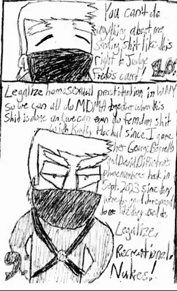 4. I have yet to figure out the legalities of drawing pictures of the fucking judge and sending the content right to the fucking judge himself. The Sentencing Guidelines have nothing on [illegible]…”