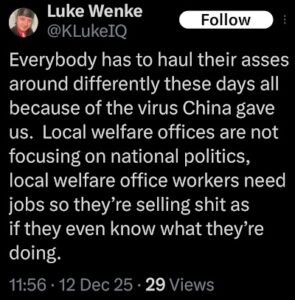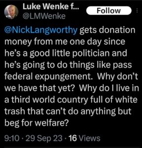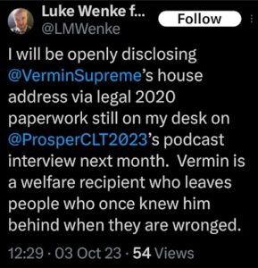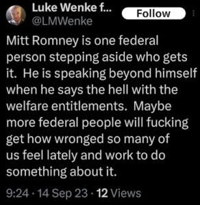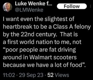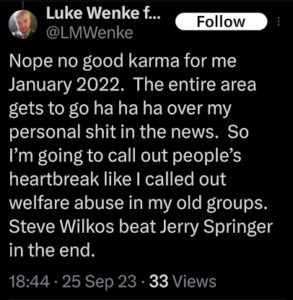 When it comes to cheap-shotting his victims, one of Luke Wenke’s go-to strategies is to “poverty shame” or make classist remarks toward/about his target.