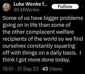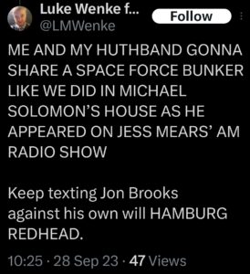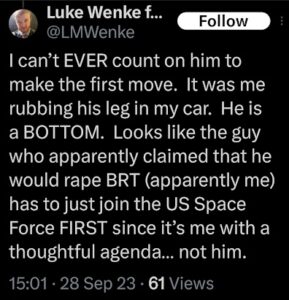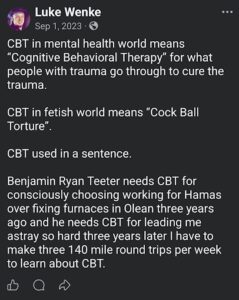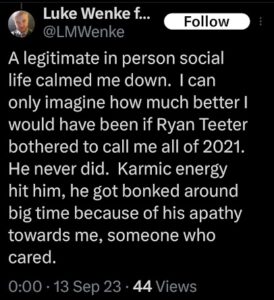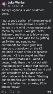 Categories: Luke Wenke, drugs, False Allegations: human rights violations; Obsessions: Carl Paladino obsession, Katie Obsession, Ryan/Benjamin obsession; screenshots, social media posts, Threats: escalation, reputation damage, threats to sue