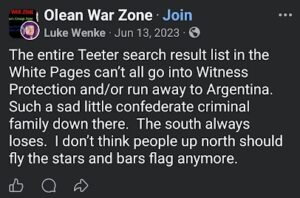 Tags: anti-American; Buffalo, NY; Cattaraugus County, Chautauqua County, Chautauqua County Jail, cocaine, delusions, demands, Derek Chauvin, Donald Trump, double proxy marriage, erotomania/romantic delusions, FBI, George Floyd, Hamas, indirect contact, Ivan Hunter, Joe Biden, Libertarian Party; Lily Dale, NY; Lockport, NY; Minneapolis, Minnesota, New York State Troopers, Niagara County Jail, North Carolina; Olean, NY; Olean Times Herald, racism; Salamanca, NY; sugar bitching, Sylvia Browne, Topix, unwanted contact, Vermin Supreme
