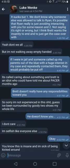 Luke Wenke got mad at me for asking questions about his plans to visit Ryan’s family, presumably because he hates accountability, or perhaps because he knew, deep down, that his presence was likely unwanted. Who knows. But he got fussy when I pushed him a little too hard for his liking, and this was the last time we would talk for nearly a year.