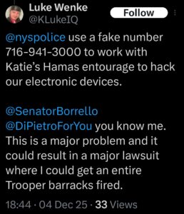 Categories: Luke Wenke, drugs, False Allegations: burglary/home invasion, conspiracy/collusion, falsifying records, forgery, HIPAA violations, impersonation, medical malpractice, trespassing, vandalism/property damage, voter suppression, wrongful conviction/incarceration; Obsessions: Carl Paladino obsession, Katie Obsession, Ryan/Benjamin obsession; screenshots, social media posts, Threats: false reviews, threats to sue